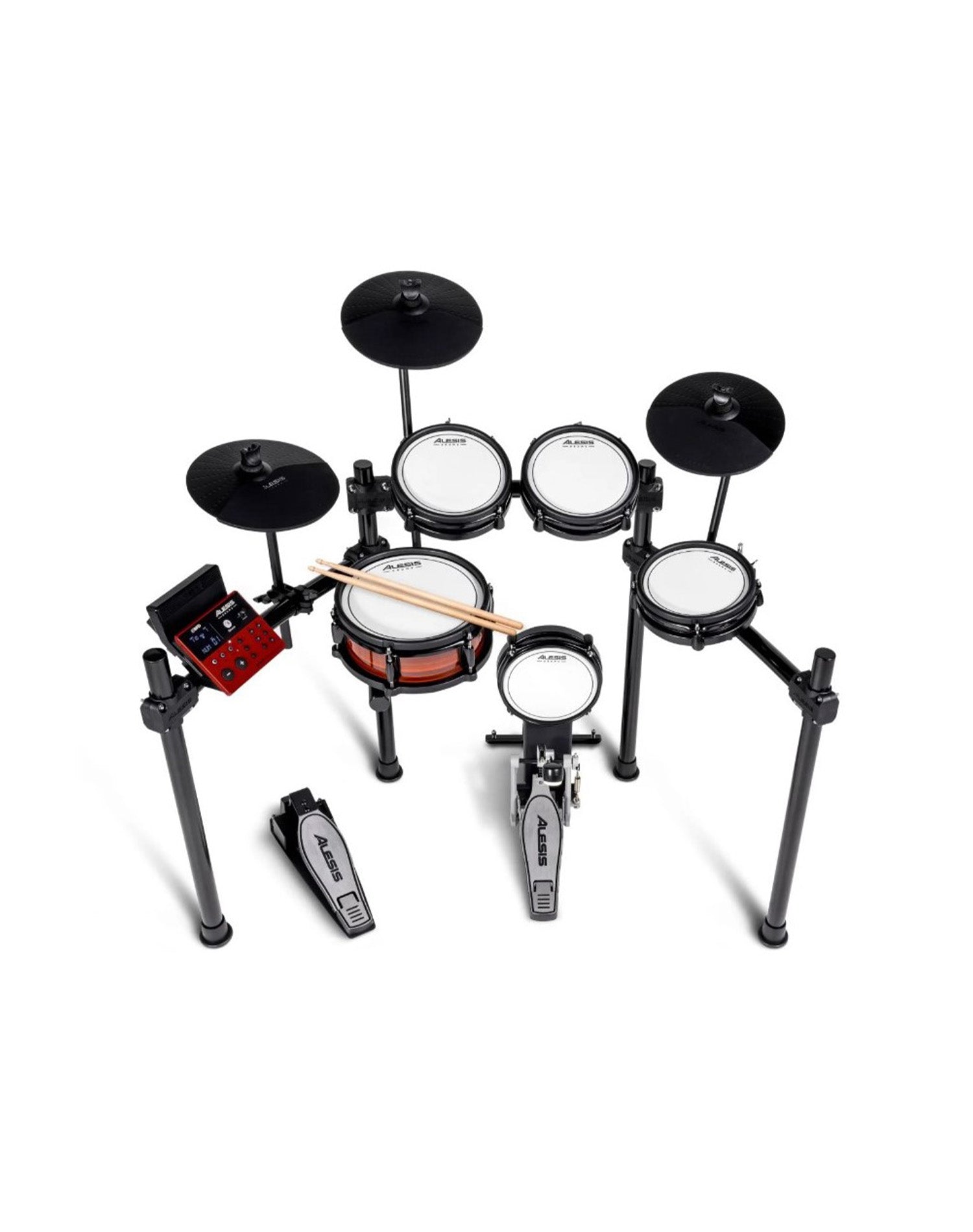 Das Alesis Nitro Pro Mesh Kit ist ein komplett ausgestattetes E-Drumset, das sich perfekt für Einsteiger und fortgeschrittene Schlagzeuger eignet. Mit seinen Mesh-Heads auf allen Trommeln bietet es ein realistisches Spielgefühl mit optimalem Rebound, ähnlich wie bei einem akustischen Drumset.